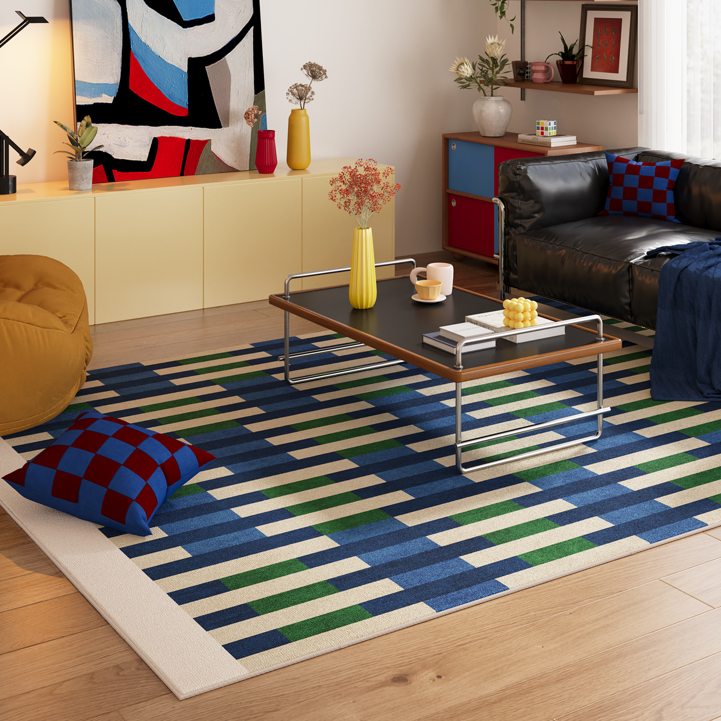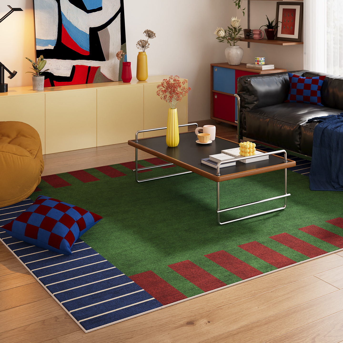 绿色包豪斯客厅地毯茶几沙发卧室地垫房间防水可擦毯新款复古防滑