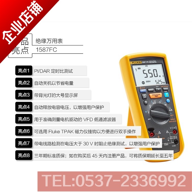 FLUKE福禄克F1508绝缘电阻测试仪数字摇表 兆欧表 F1587FC万用表