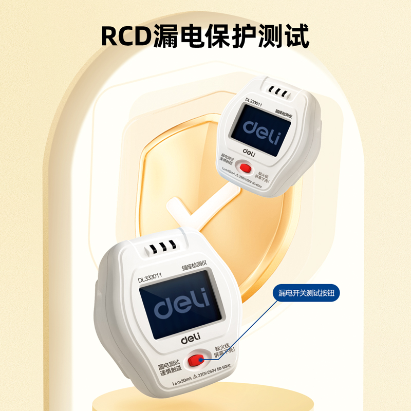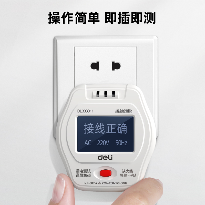 得力插座检测仪数显测试相位电源极性测电器验电器电源漏电检测器