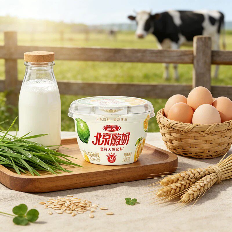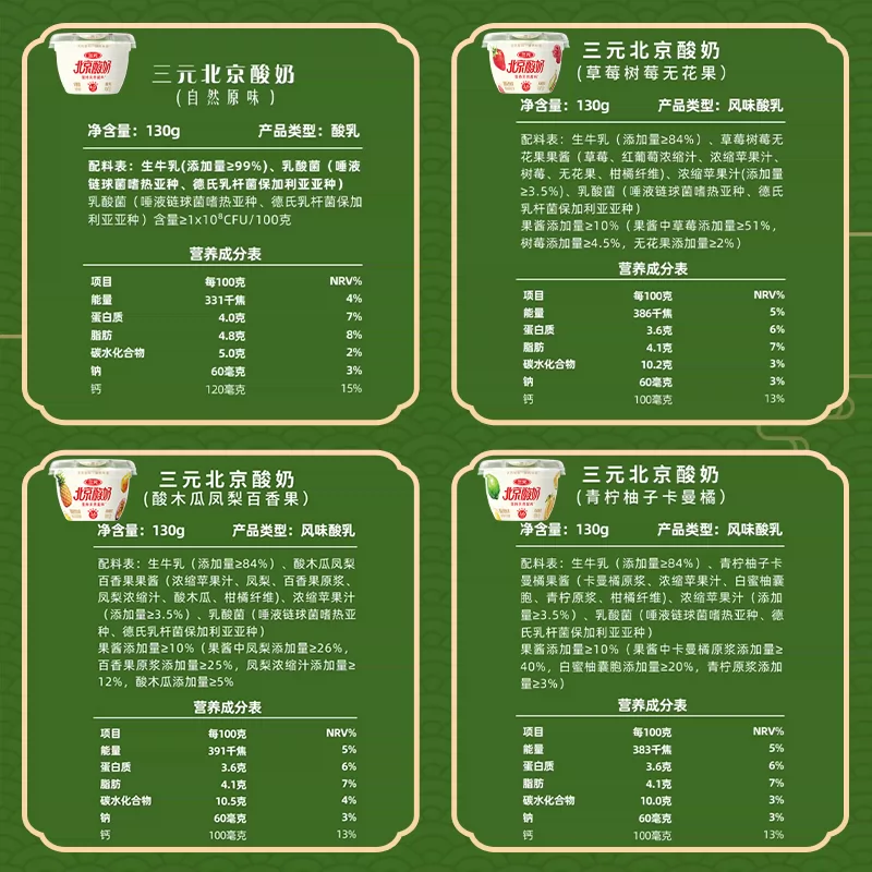 【超品日】三元北京酸奶天然配料原味130g*8送茯苓酸奶150g*4杯