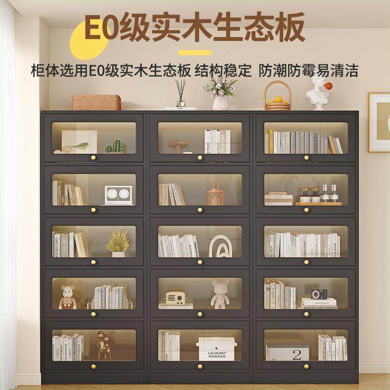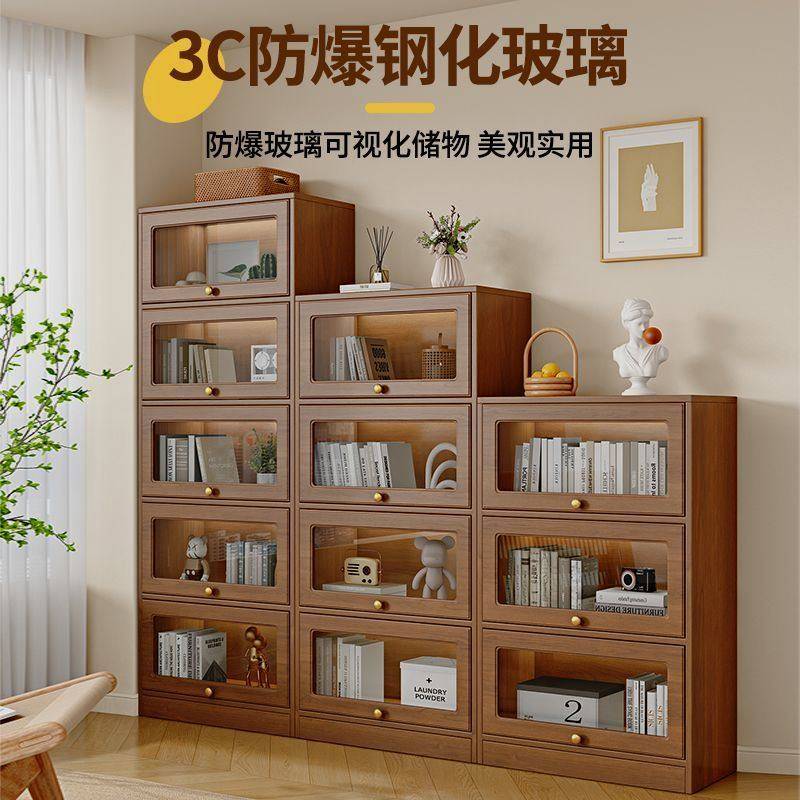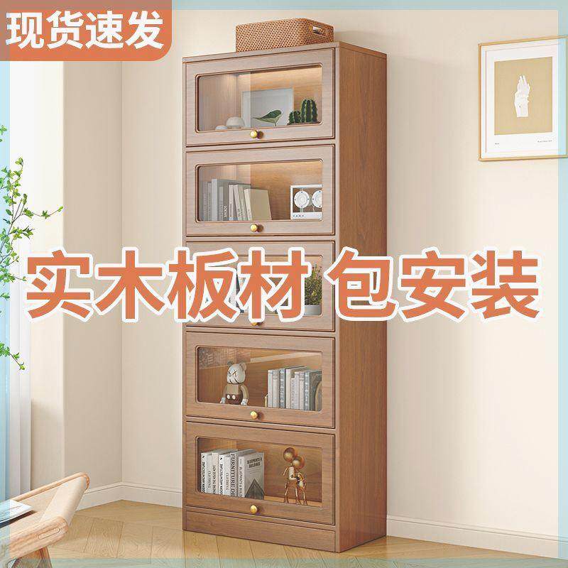 实木书架书柜带柜门靠墙柜子储物柜简约家用书厨住宅家具组合书柜