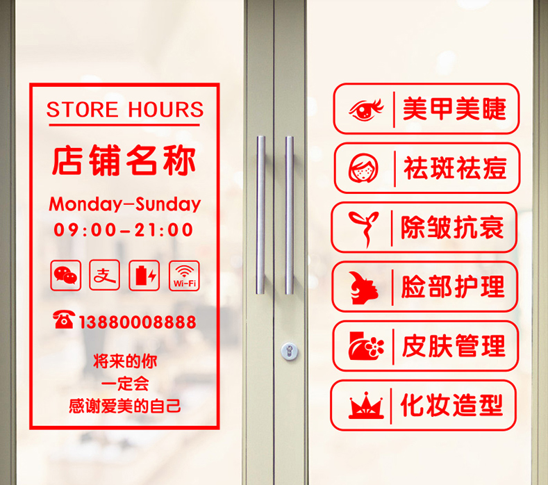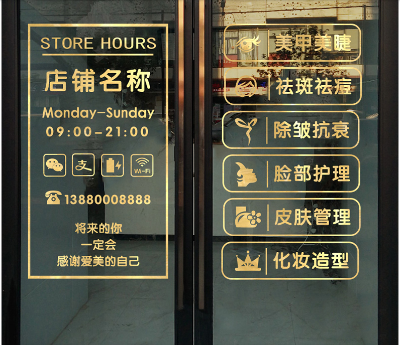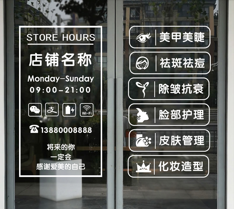 美容院美甲美睫店贴字店铺玻璃门贴纸装饰贴橱窗门上项目广告文字