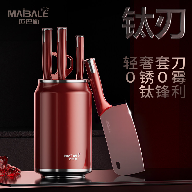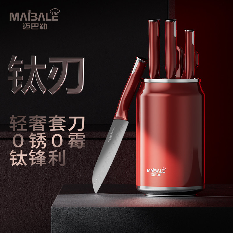 全新上市迈巴勒奢华钛刃具套装家用全套厨房组合抗菌菜刀不锈钢