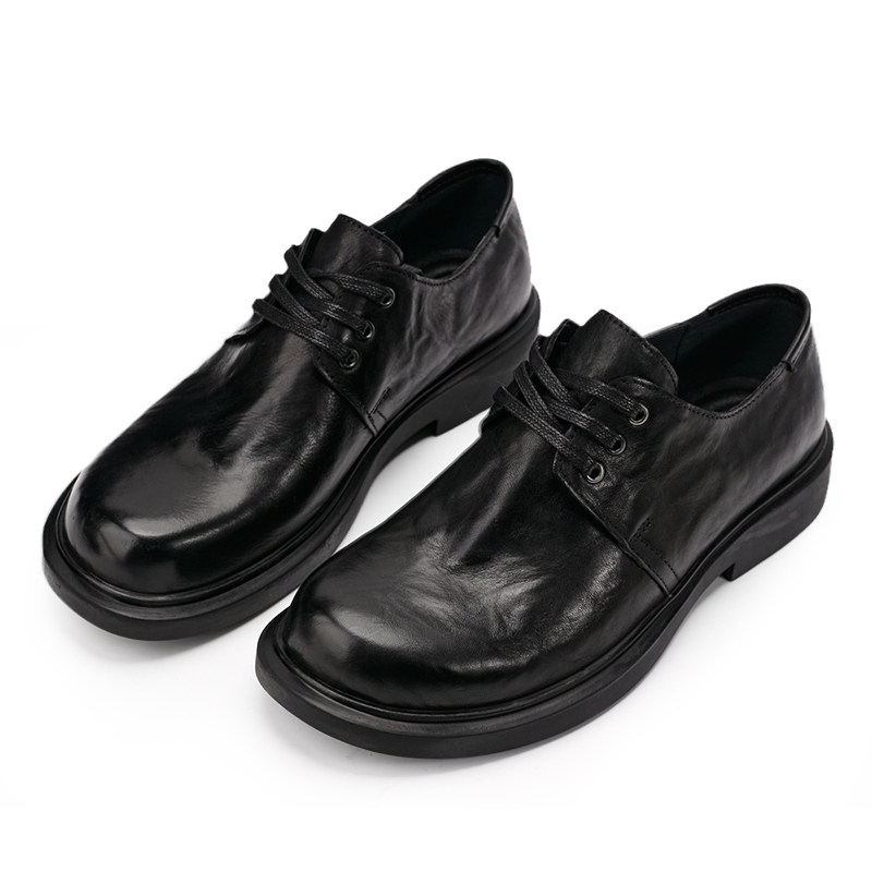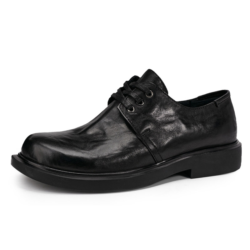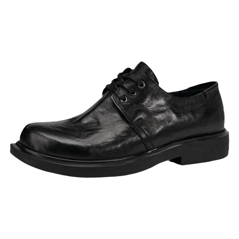 鞋子男士春夏真皮透气休闲商务鞋平底潮流黑色百搭皮鞋系带圆头鞋