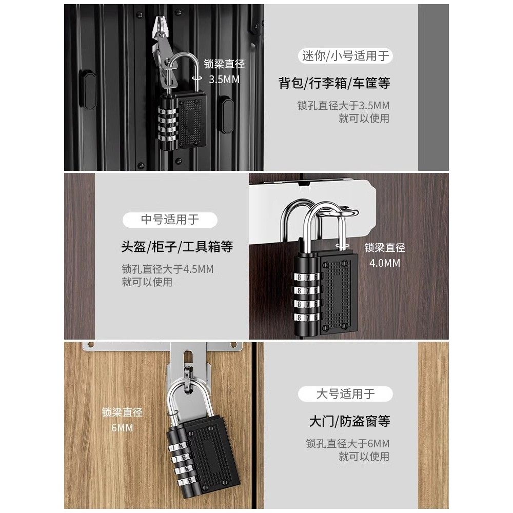 密码挂锁加长宿舍行李箱包健身房柜子门长梁家用防盗锁头小号挂锁