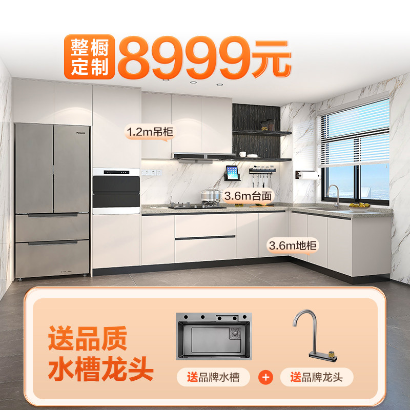 全友全屋定制整体橱柜小户型厨房收纳储物柜石英石台面灶台柜一体