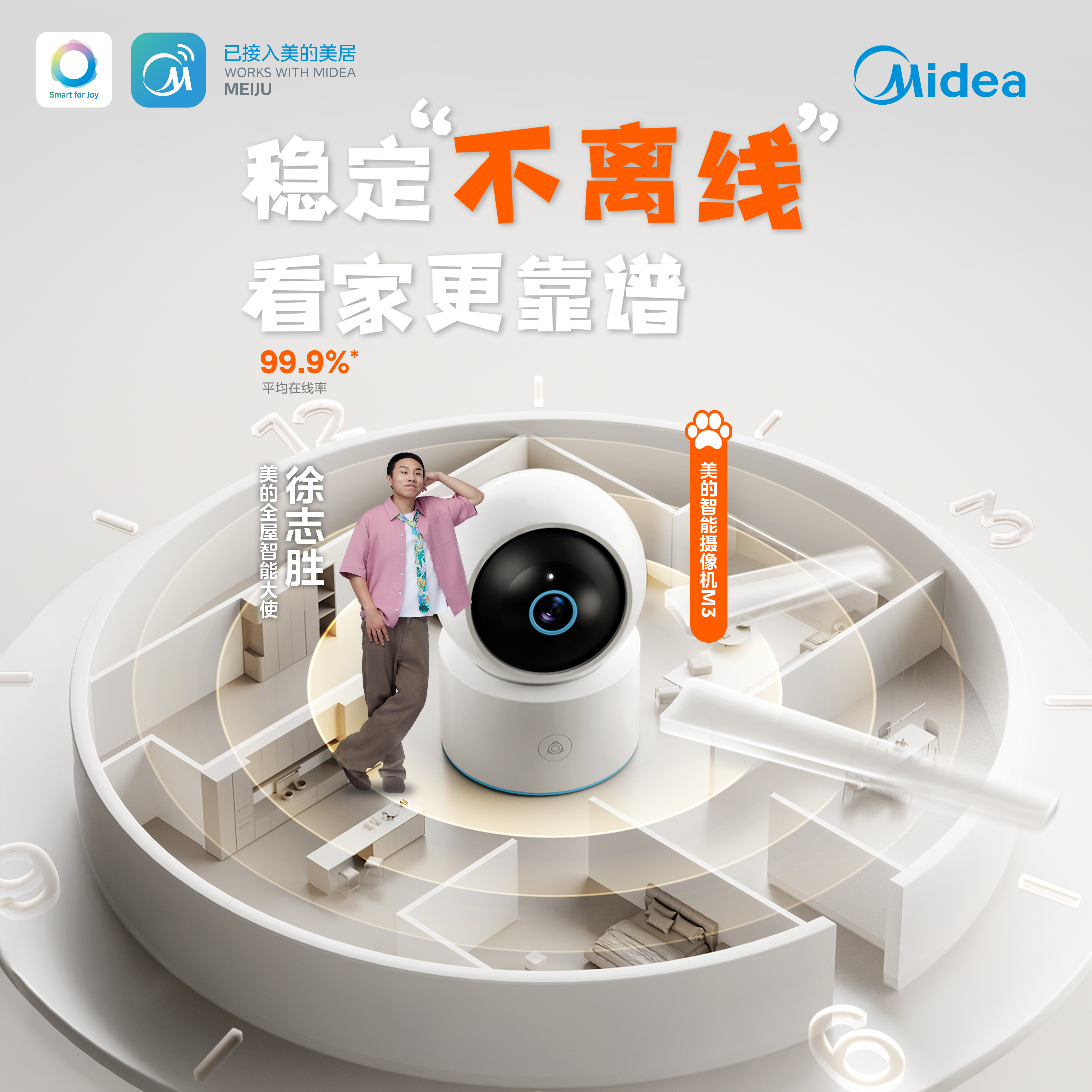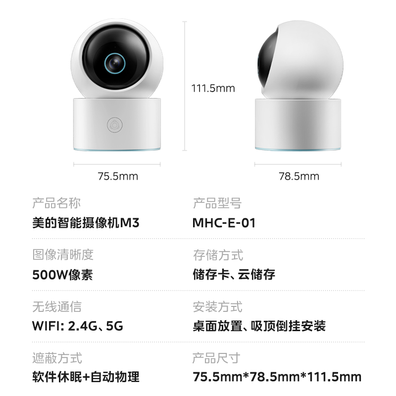 美的智能摄像头云台版监控家用手机远程无线网络摄像机360全景M3
