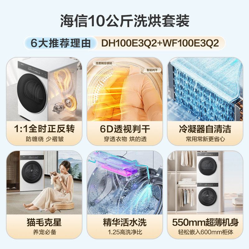 海信大薄荷10公斤滚筒洗烘套装家用健康活水洗衣机热泵烘干机E3Q2