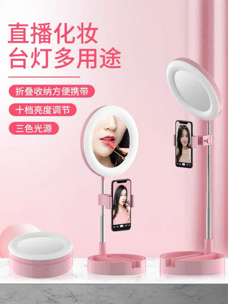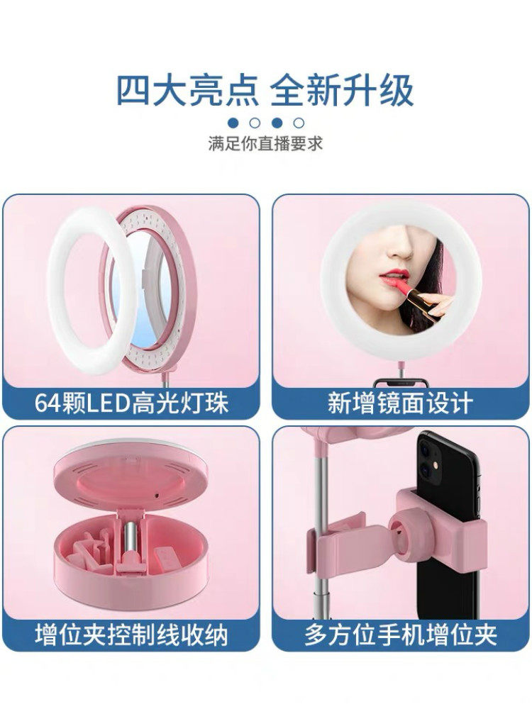 直播拍照补光灯支架专用主播美颜嫩肤美颜灯室内用网红打光灯神器桌面款抖音手机高清小型环形自拍灯便携落地