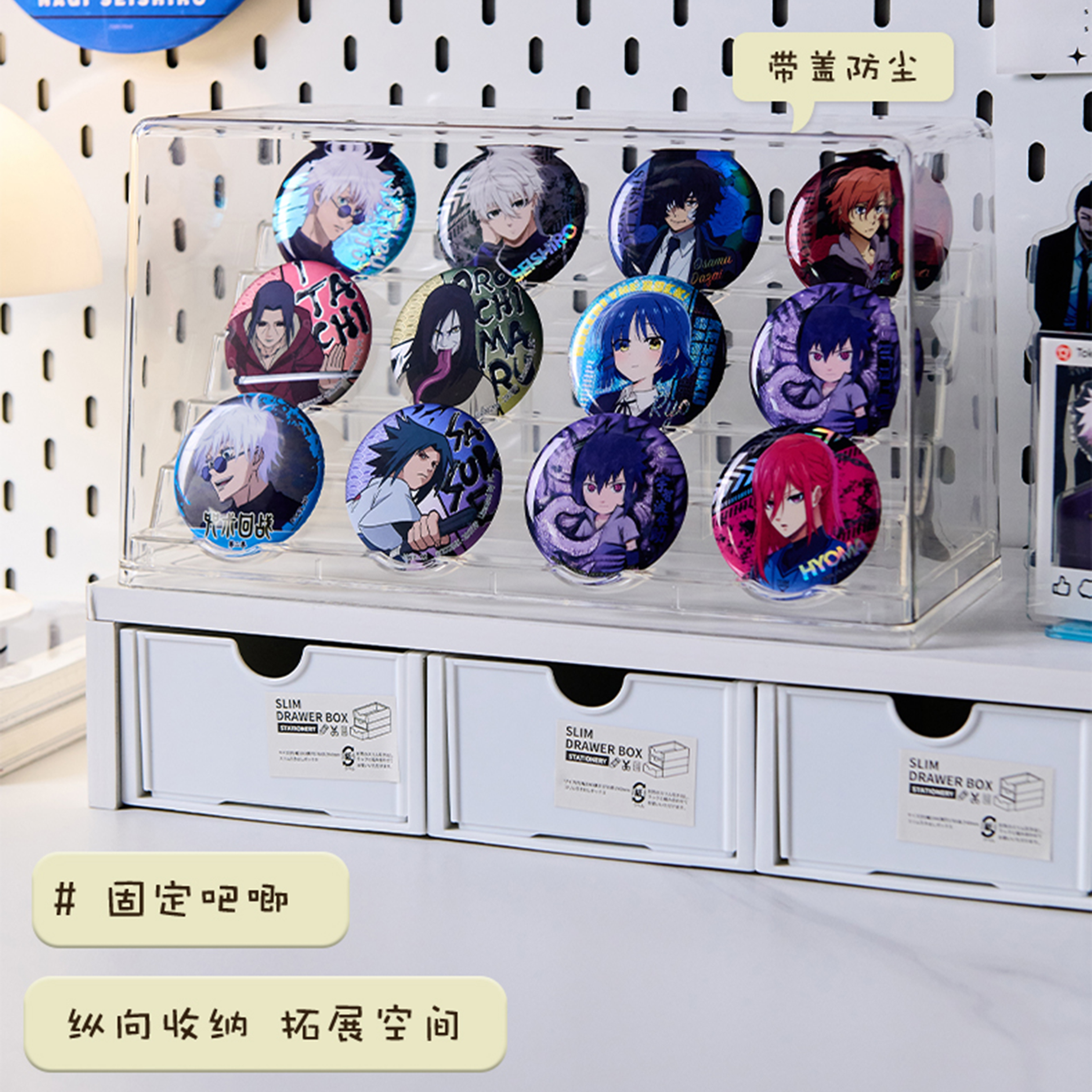 GOTO优选吧唧收纳盒透明展示柜徽章谷子动漫周边展示架桌面整理盒