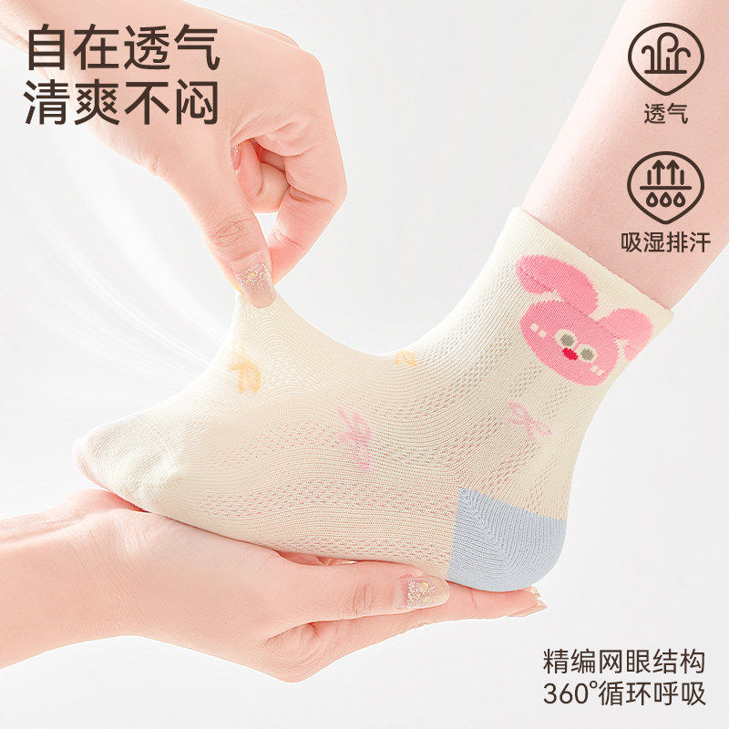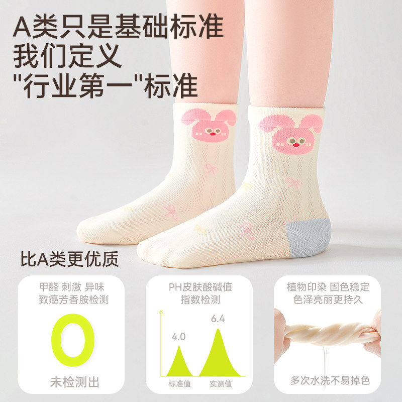 【百棉袜】儿童袜子A类纯棉春夏薄款透气网眼中筒袜女童无骨棉袜