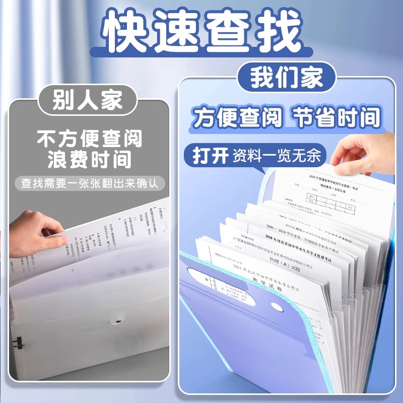 a4手提文件夹试卷袋多层大容量手拎式风琴包小学生专用卷子收纳袋整理神器初中高中生书夹子科目分类试卷夹