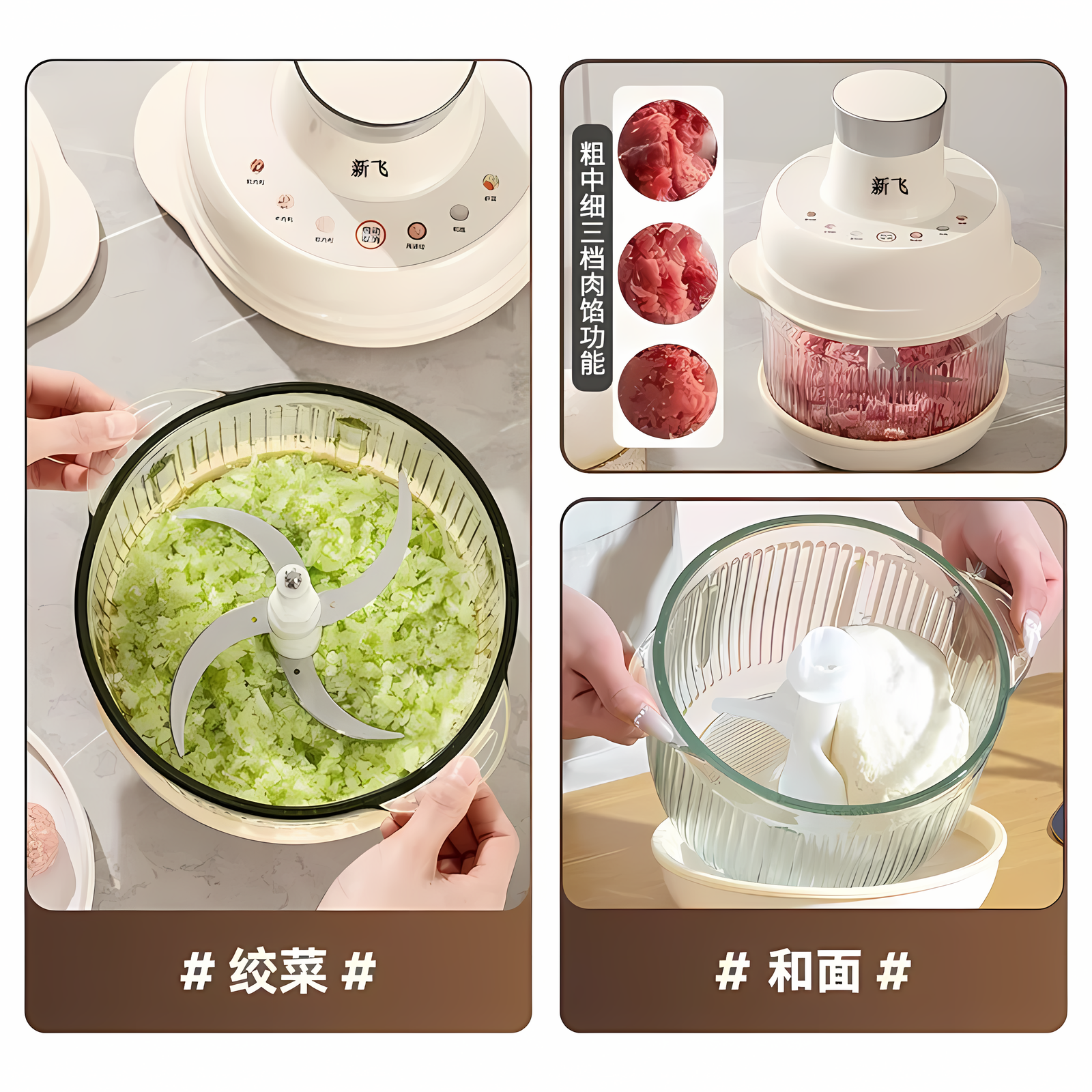 新飞家用绞肉机全自动和面厨师机揉面绞肉一体机多功能料理机电动