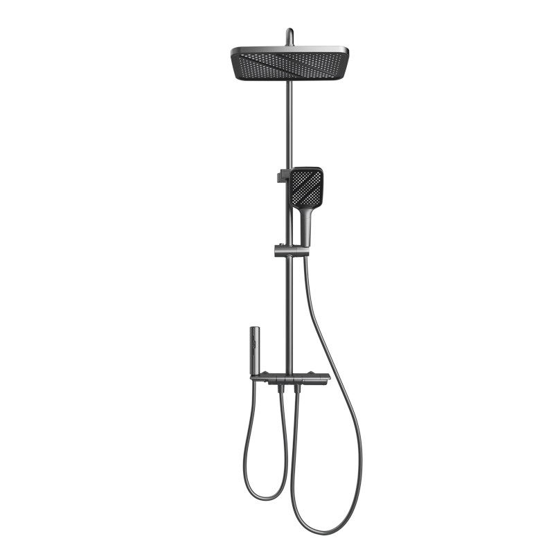 欧琳花洒淋浴套装家用琴键精铜主体大顶喷枪灰色简易普通花洒6303