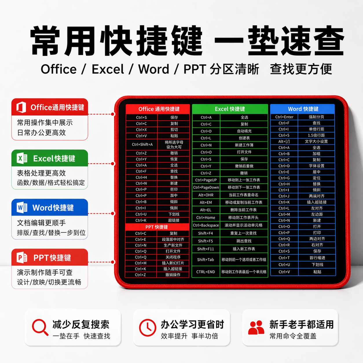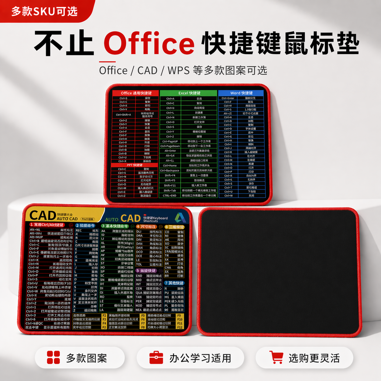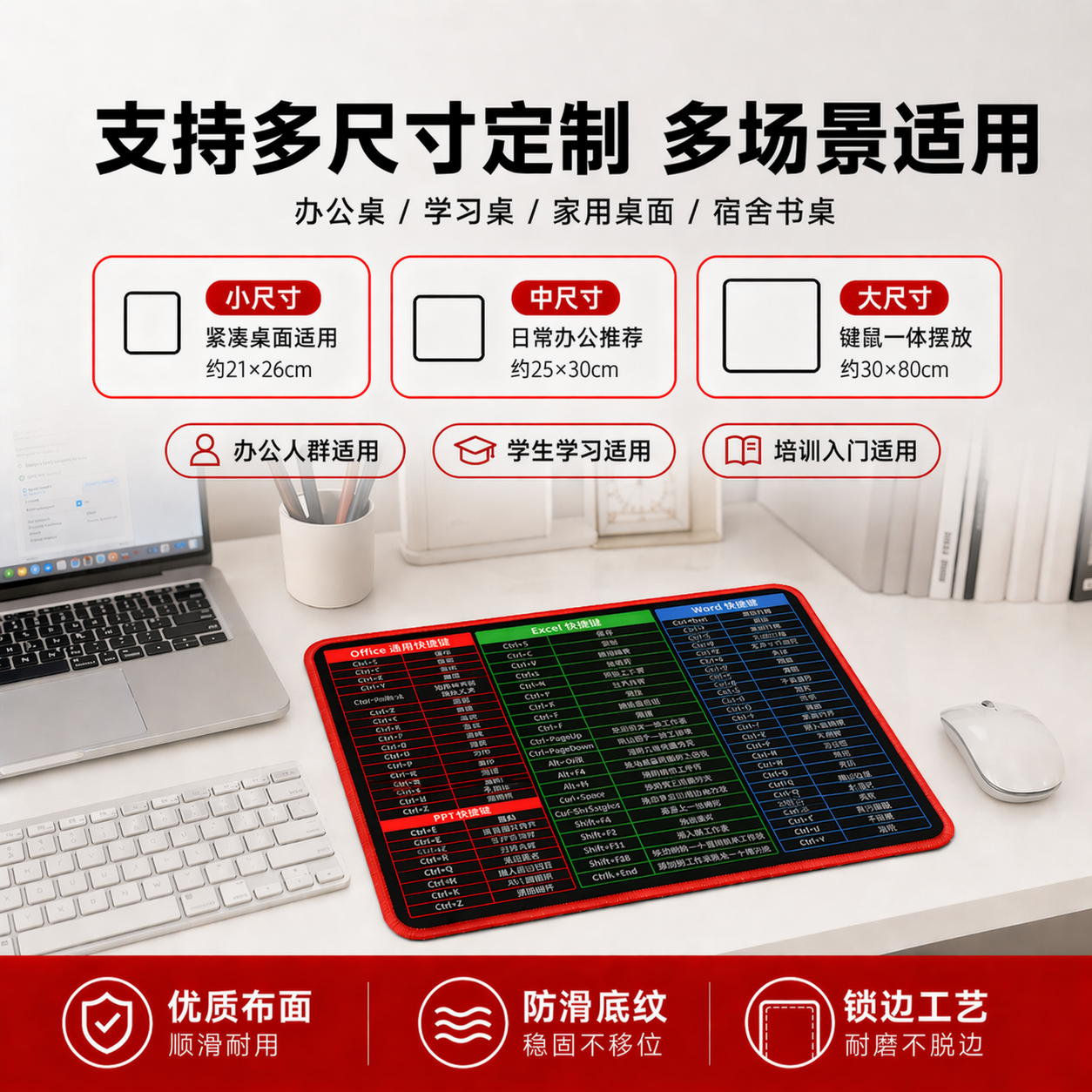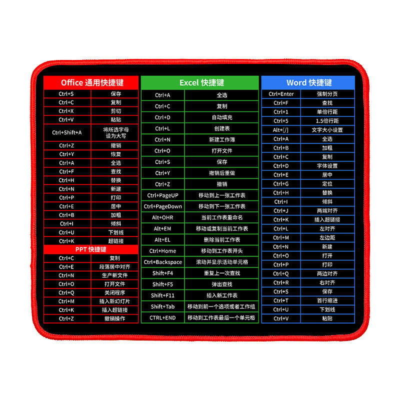 办公快捷键鼠标垫Office/cad/Excel小号锁边垫家用超大号加厚桌垫