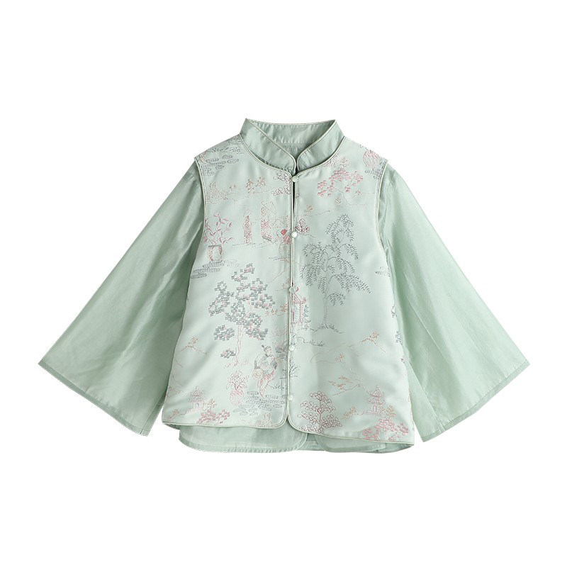 布丁哈鲁春装女童新中式汉服套装2026春秋新款儿童衬衫国风马甲
