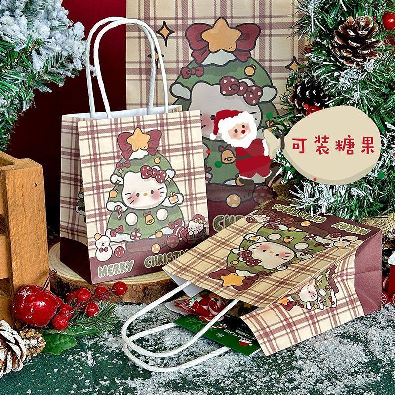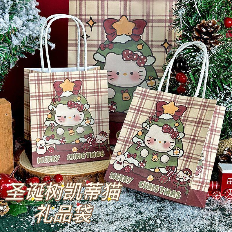 圣诞树凯蒂猫圣诞节礼品袋高颜值ins节日牛皮纸精美送礼礼品包装