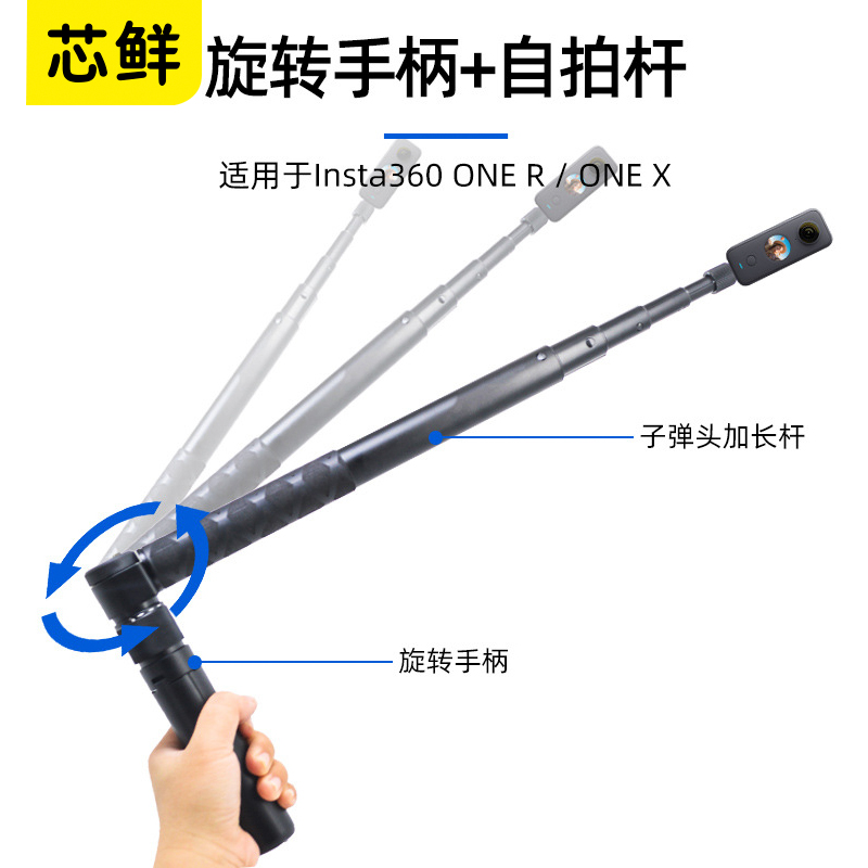 芯鲜适用insta360 X5 X4 X3 X2大疆OSMO360手持延长杆RS全景运动相机隐形自拍杆加长2米1.5m支架子弹时间手柄