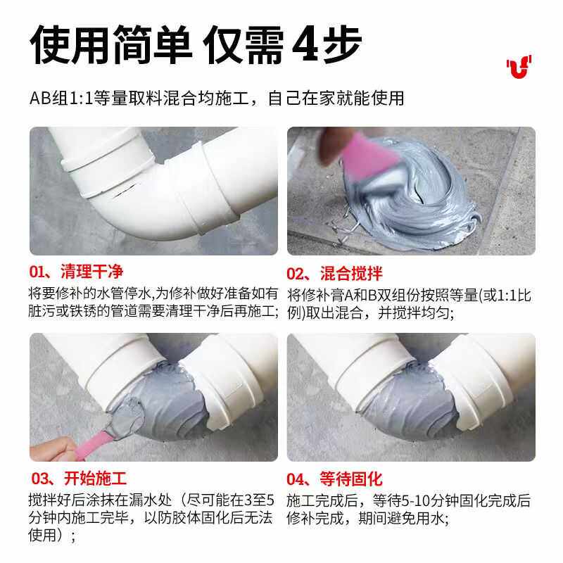 管道水管接头漏水补漏神器暖气片油箱修补胶防水耐高温速干修补胶