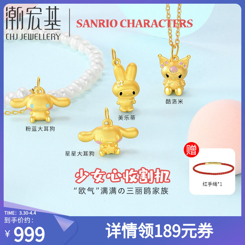 潮宏基 三丽鸥联名 黄金吊坠足金挂坠手饰转运珠手链3D硬金珐琅