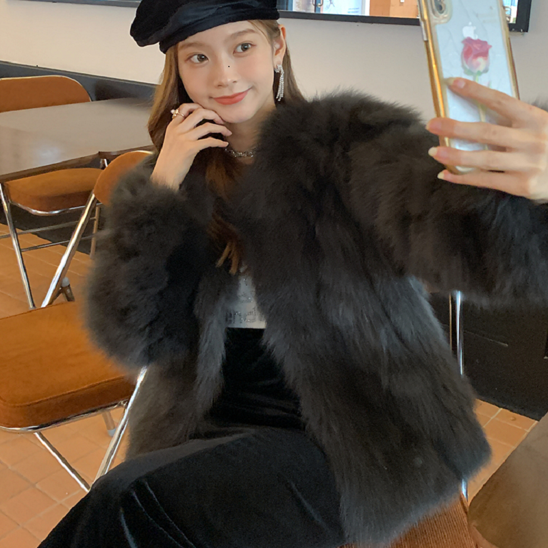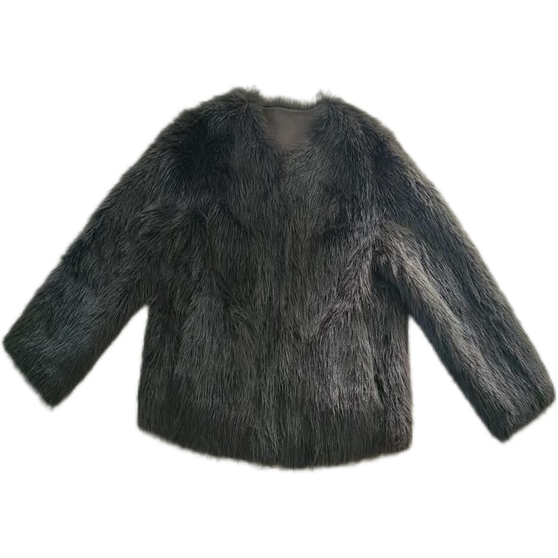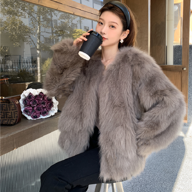 仿狐狸毛女士皮草外套短款2025新款海宁时尚年轻款V领毛毛绒大衣