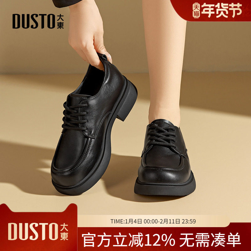 大东dd深口单鞋女2026新款女鞋春季系带小皮鞋英伦风厚底乐福鞋女