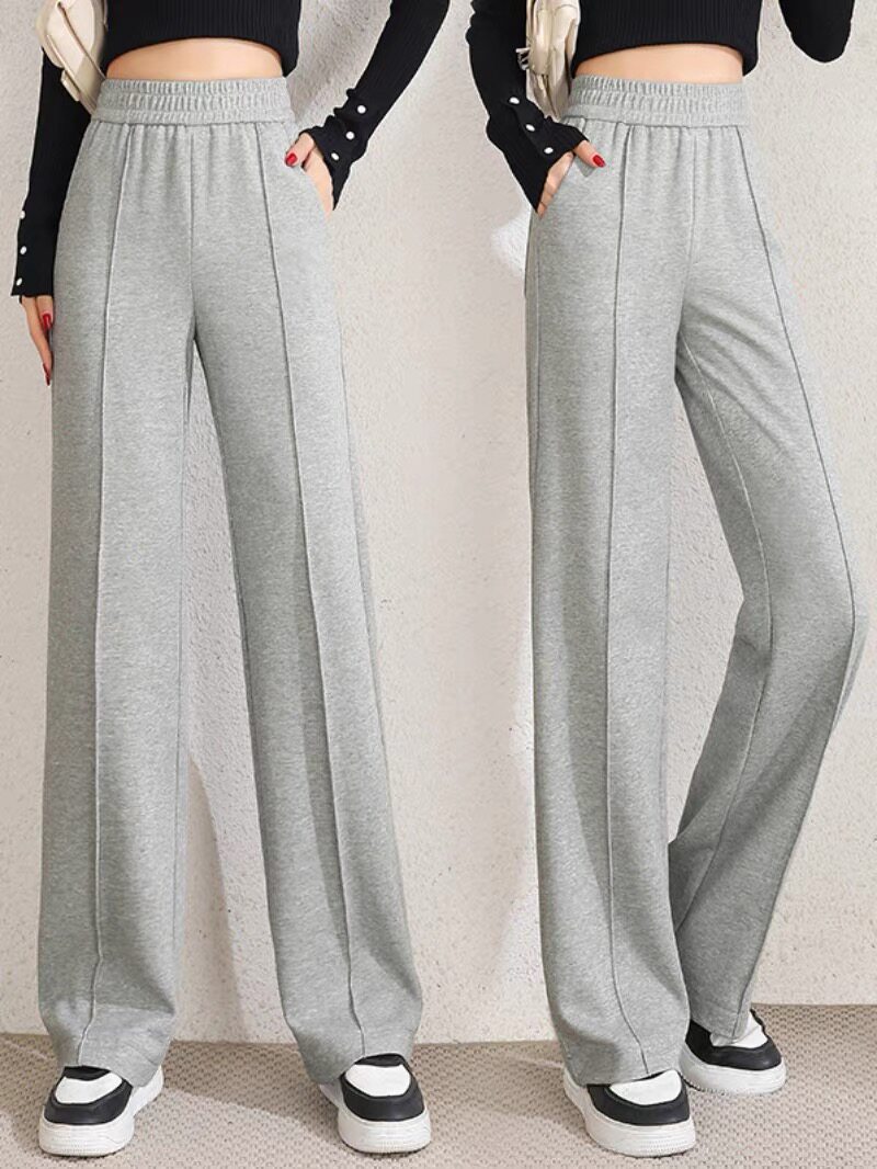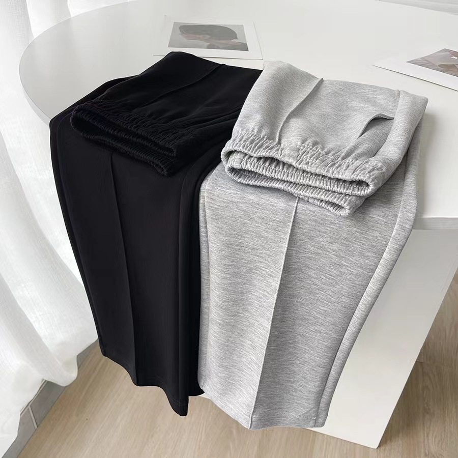 2024新款宽松直筒垂感阔腿裤女士春秋夏季灰色长裤冰氧棉运动卫裤