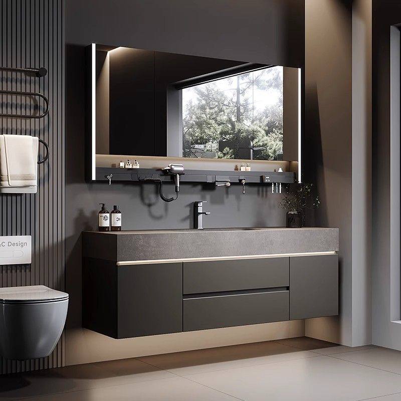 莫顿法式奶油风浴室柜组合岩板热弯一体盆卫生间洗漱洗脸洗手盆柜