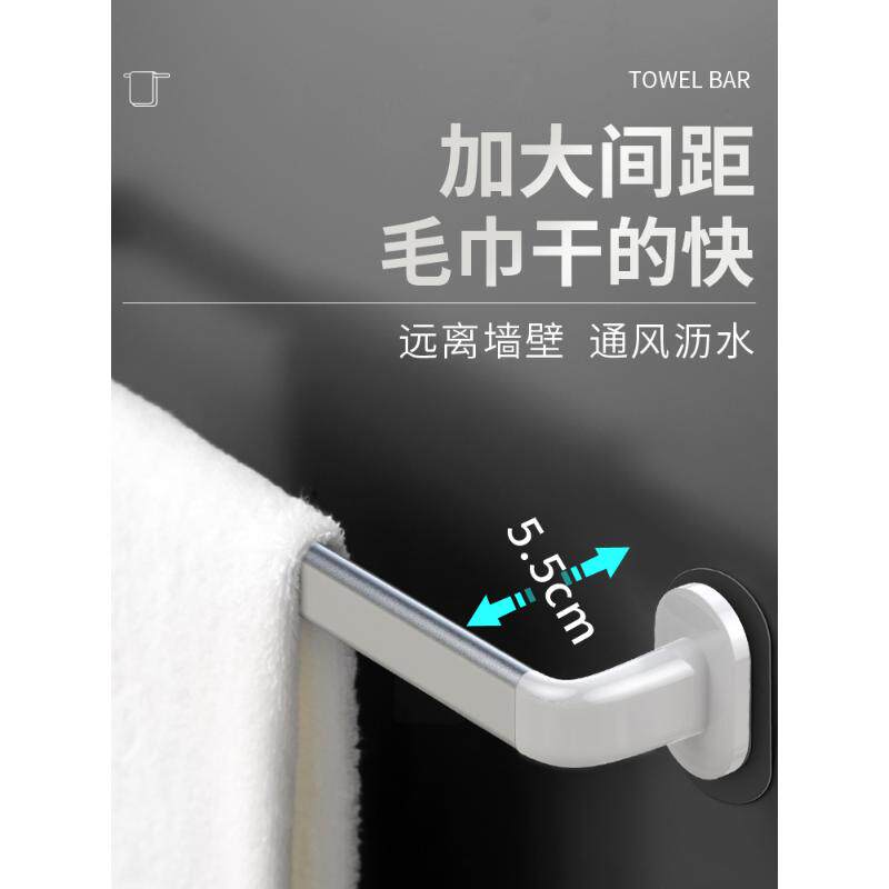 挂在玻璃上的毛巾架粘单杆免打孔卫生间置物架浴室太空铝浴巾挂杆