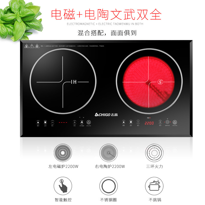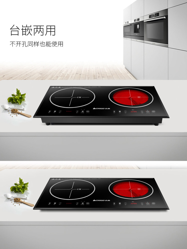 Chigo/志高 34D6电磁炉家用炒菜一体灶嵌入式套装电陶炉双灶控温