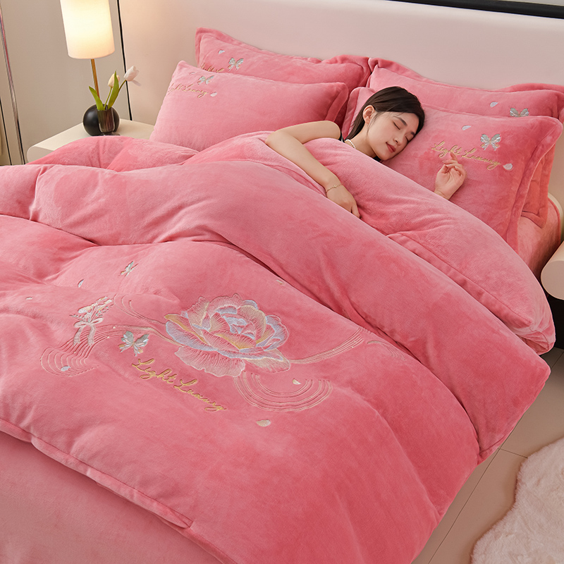 高端牛奶绒四件套珊瑚绒毛加厚法兰绒面床单被套床笠冬季床上用品