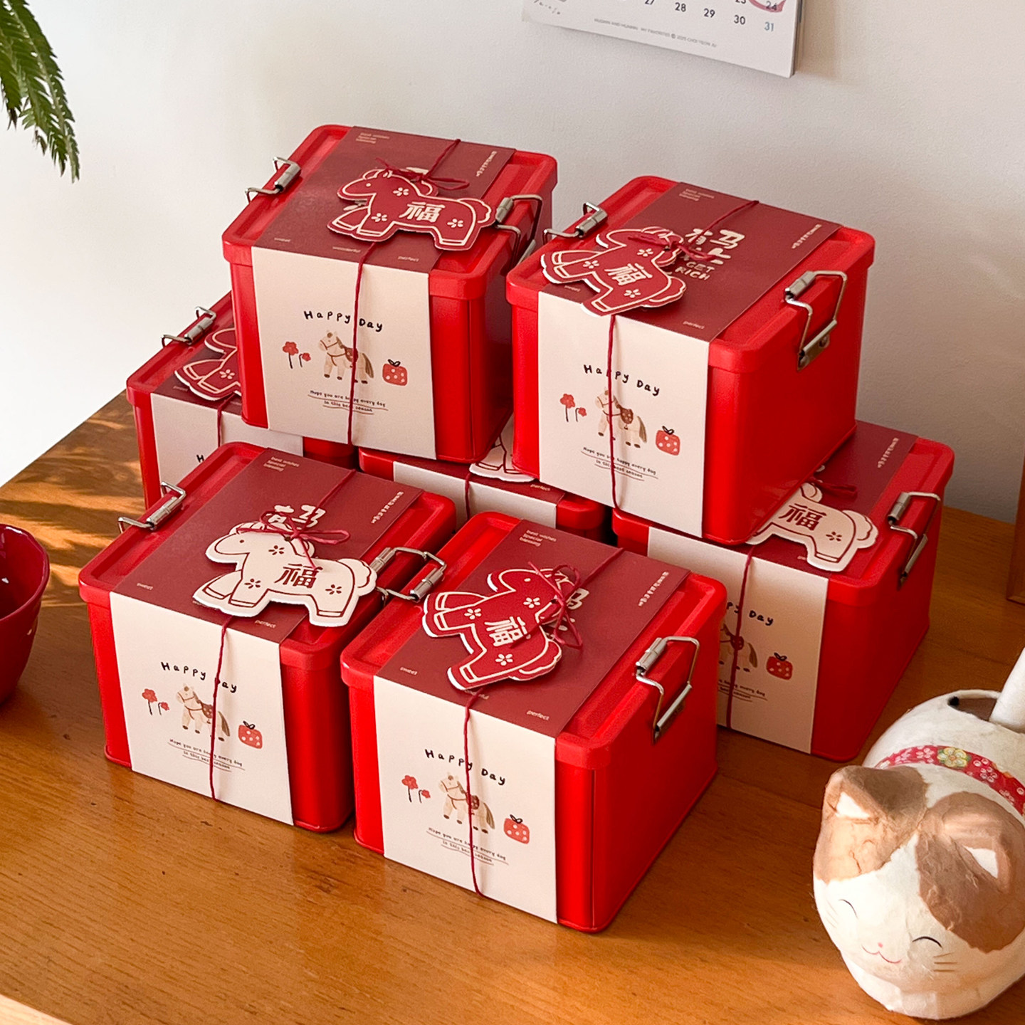 新款2026马年包装盒新年马口铁铁盒空盒子烘焙曲奇饼干糖果盒定制