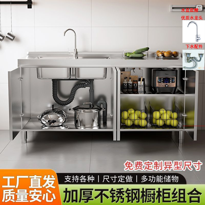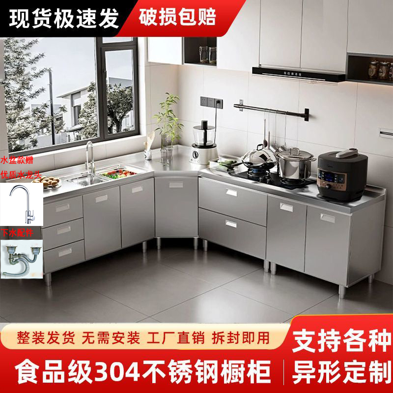 全屋定制不锈钢厨房橱柜餐边柜简易灶台一体储物收纳碗柜家用出租