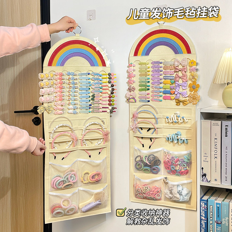 儿童发饰收纳神器壁挂毛毡女孩头绳发箍夹首饰架整理发夹展示挂袋