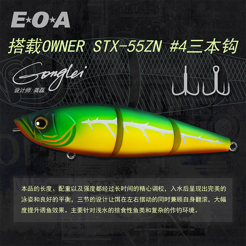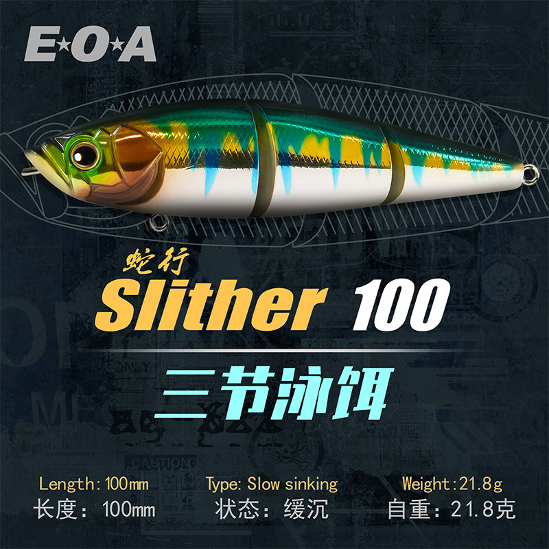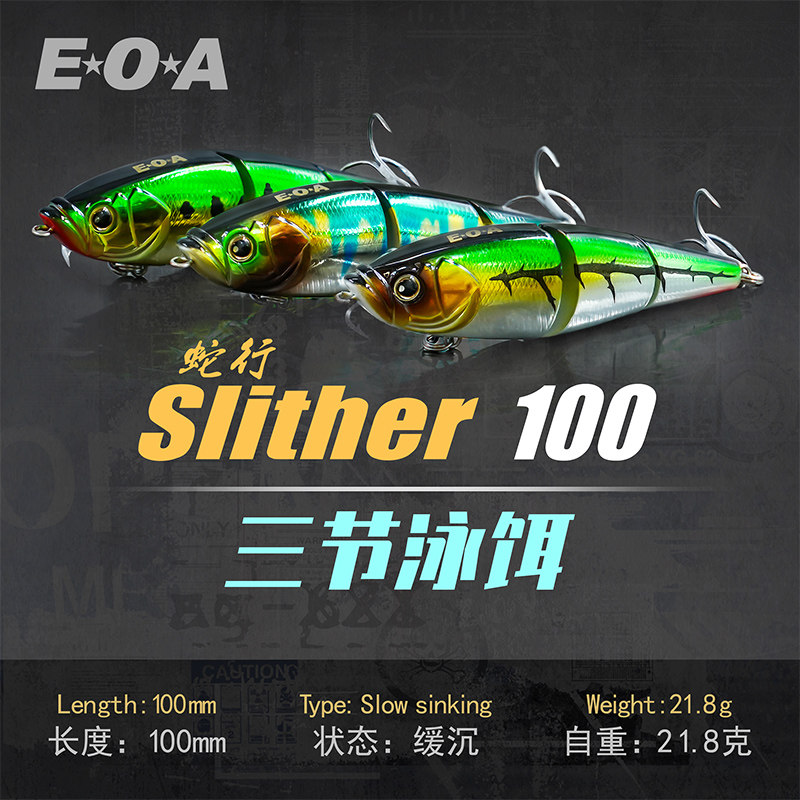 EOA龚磊slither 100蛇行三节泳饵路亚饵远投泳饵三节鱼路亚硬饵