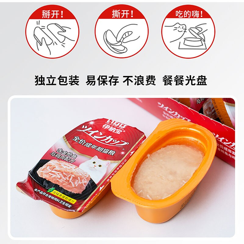 伊纳宝猫咪主食罐头双联杯一分为二餐盒宠物零食成猫全价湿粮