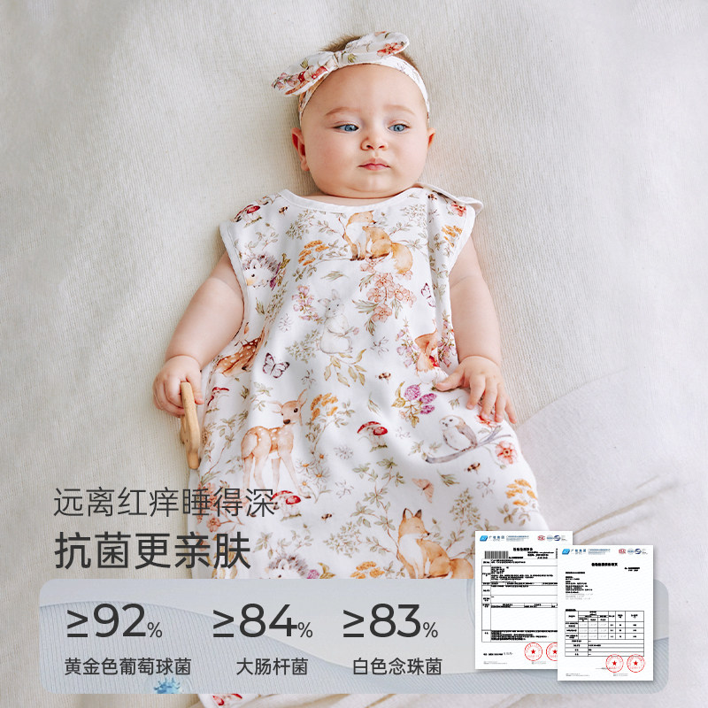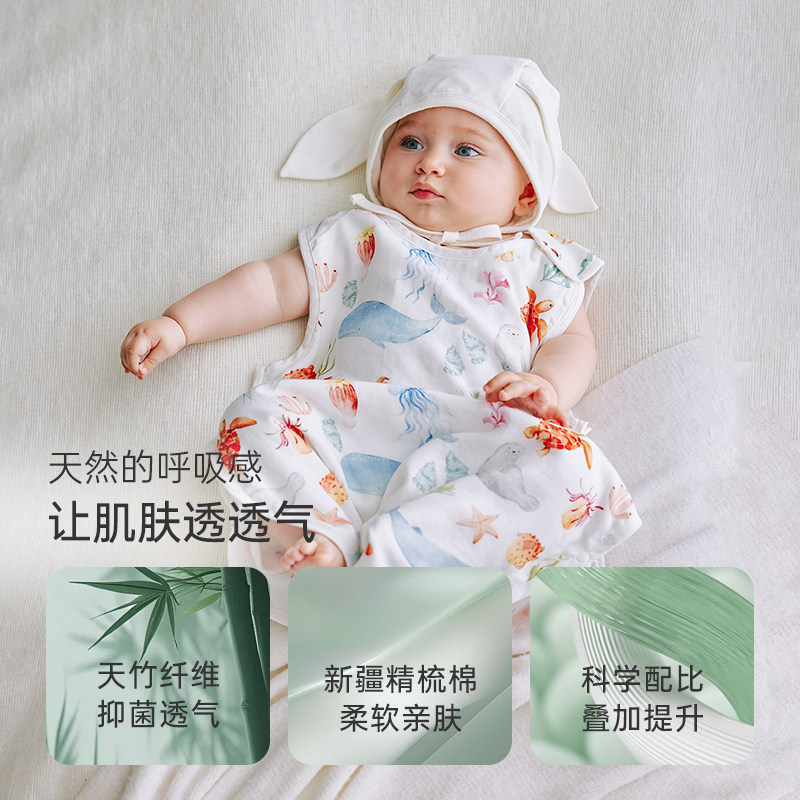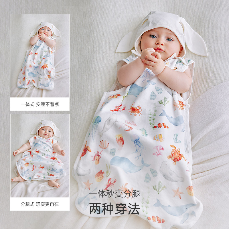 Oak Family婴儿成长背心睡袋夏季儿童纱布分腿睡带一体式防踢被