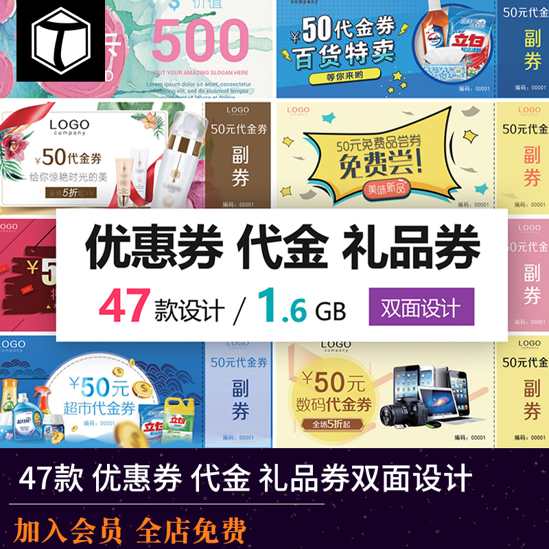 优惠券代金券礼品券卡券购物卡美食餐饮化妆品 PSD模板素材