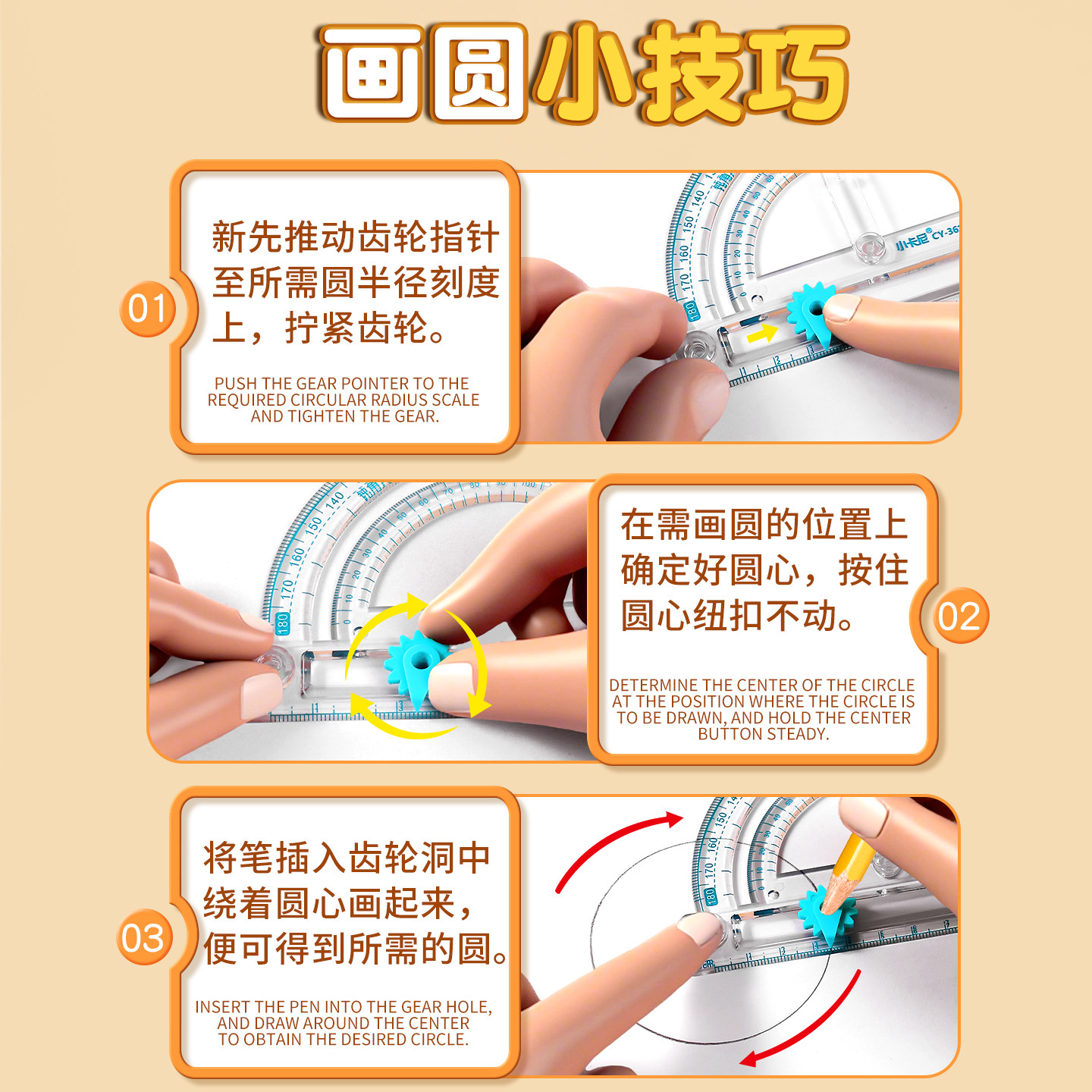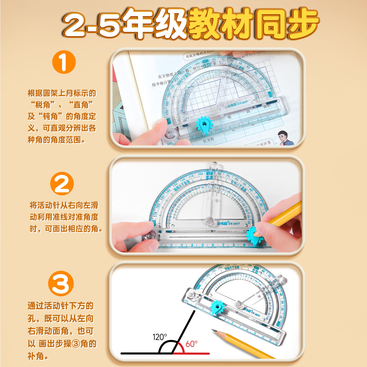 量角器多功能高精准角度尺套装小学生二三四年级专用开学必备用品教具半圆仪全圆量角尺透明几何绘图圆形划线