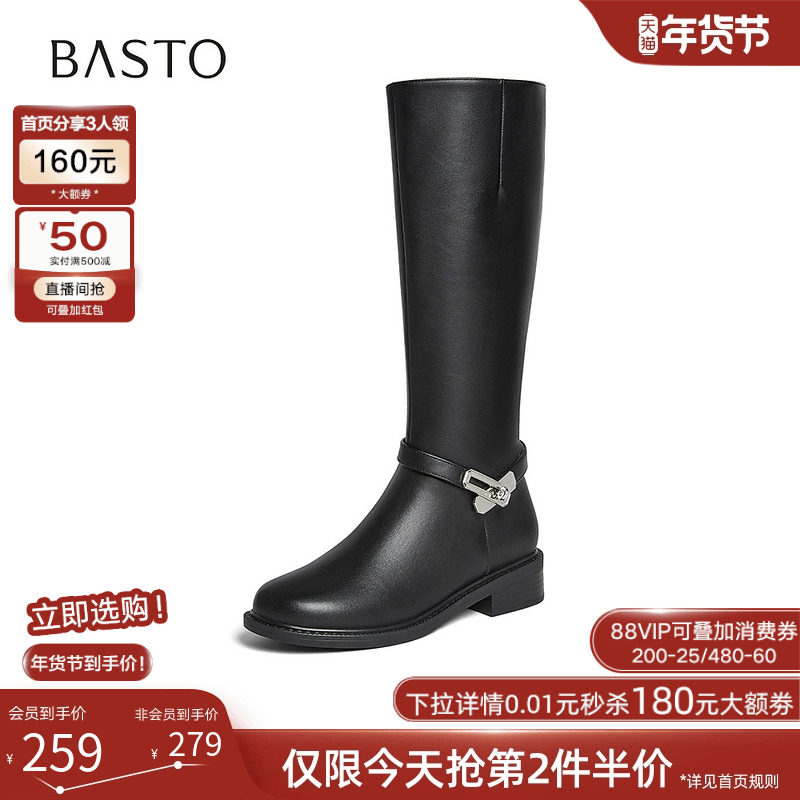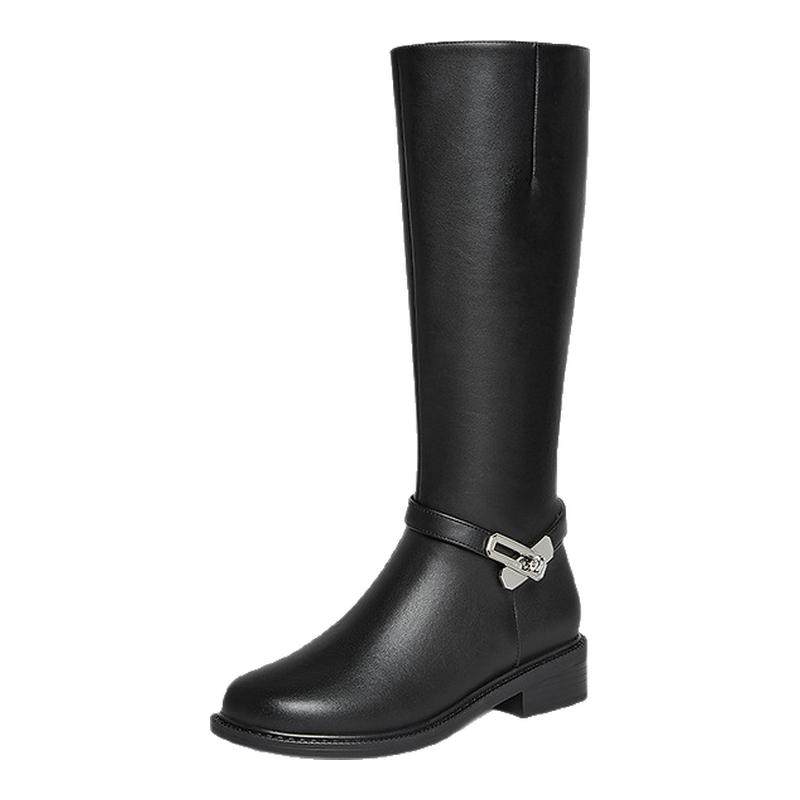 百思图2025冬季新款质感牛皮靴骑士靴通勤加绒高筒女长靴K5131DG5