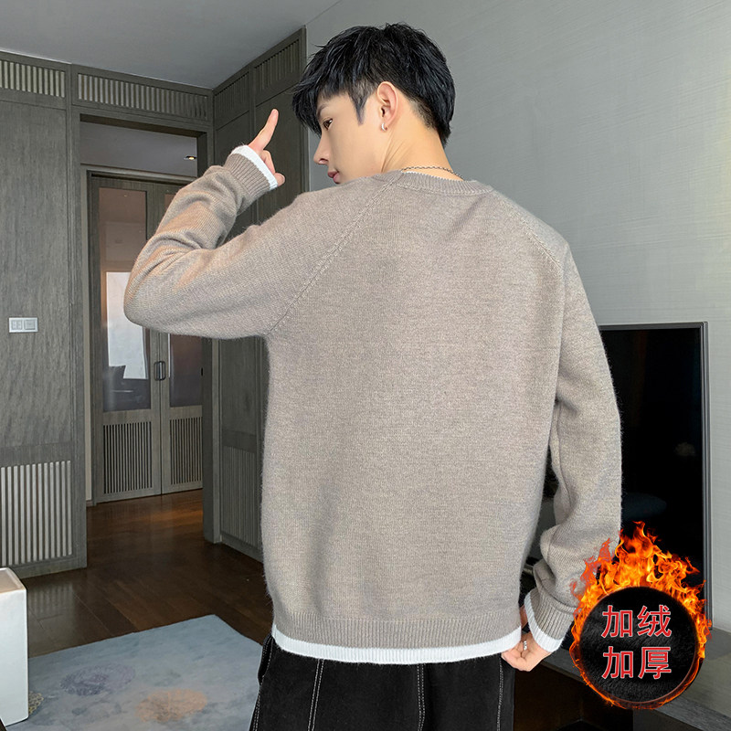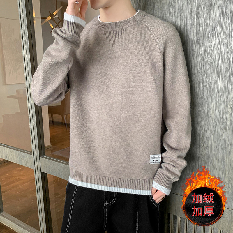 男士圆领毛衣秋冬季潮流青少年帅气百搭半高领线衣加绒打底针织衫