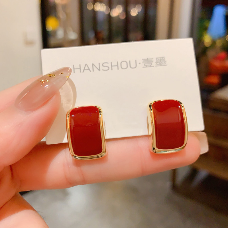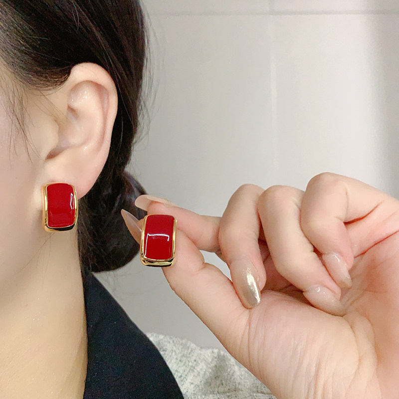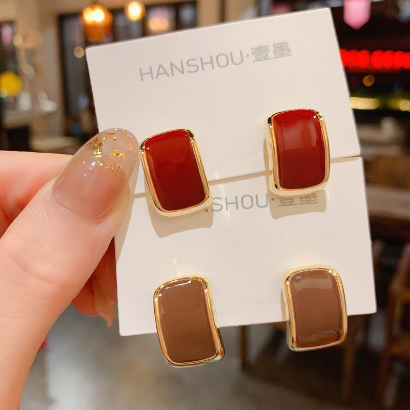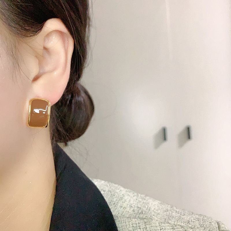 设计感银针简约几何耳环百搭时尚滴釉耳饰气质耳钉女2025年新款潮