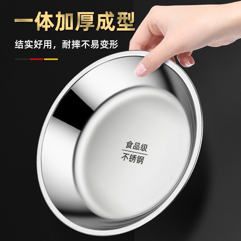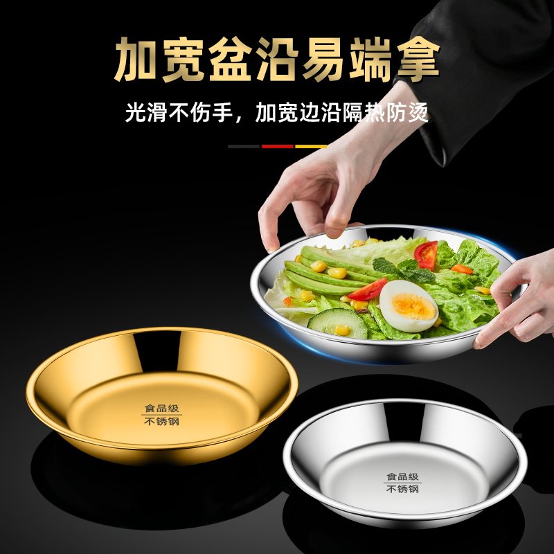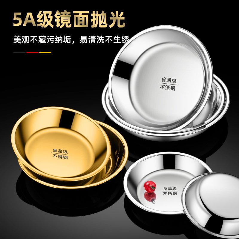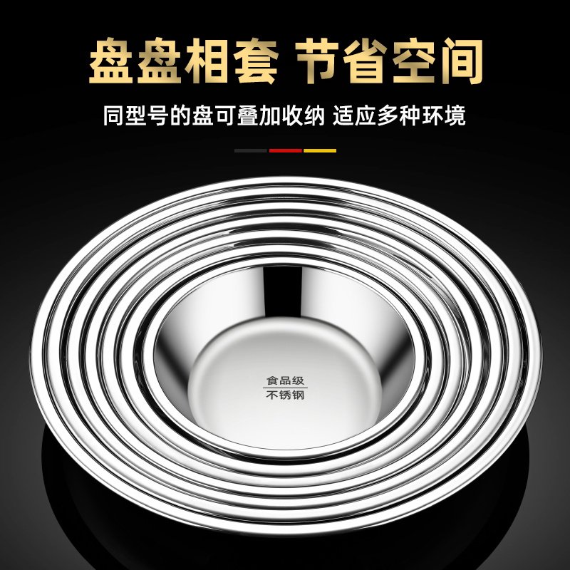 食品级不锈钢圆盘加厚家用厨房碟子浅盘菜盘蒸盘餐盘烧烤商用盘子