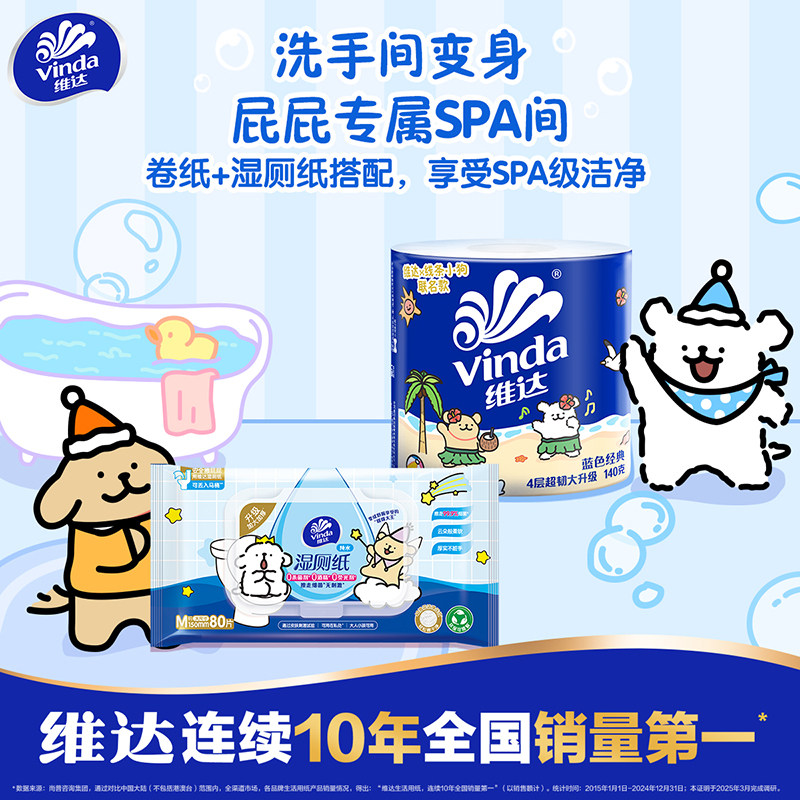 维达超韧线条小狗有芯卷纸卫生纸厕纸140克10卷家惠实用