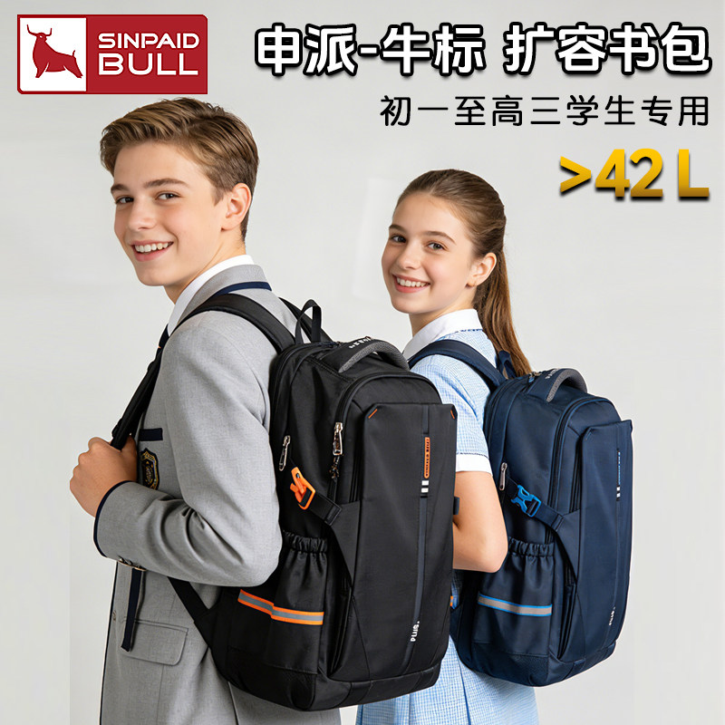 【初中生】申派牛标扩容书包女减负护脊高颜值轻大容量高中书包男