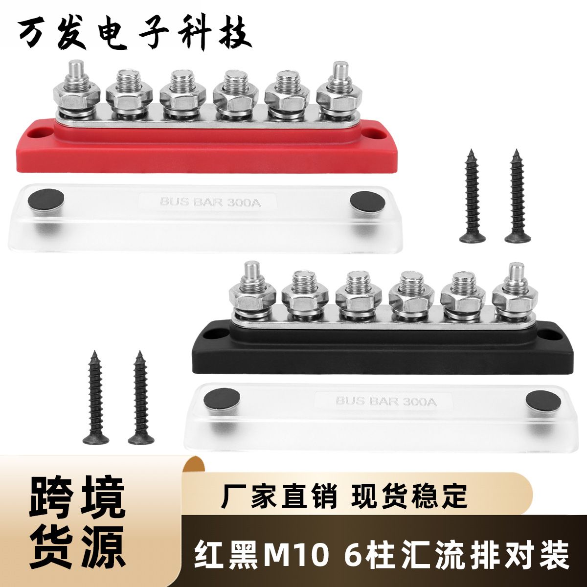 汽车M10红黑6路汇流排套装 300A铜排直排接线带配件透明盖汇线排