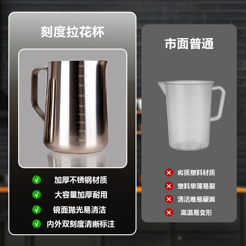 不锈钢拉花杯带刻度量杯拉花缸打奶泡壶花式咖啡杯奶茶店专用工具