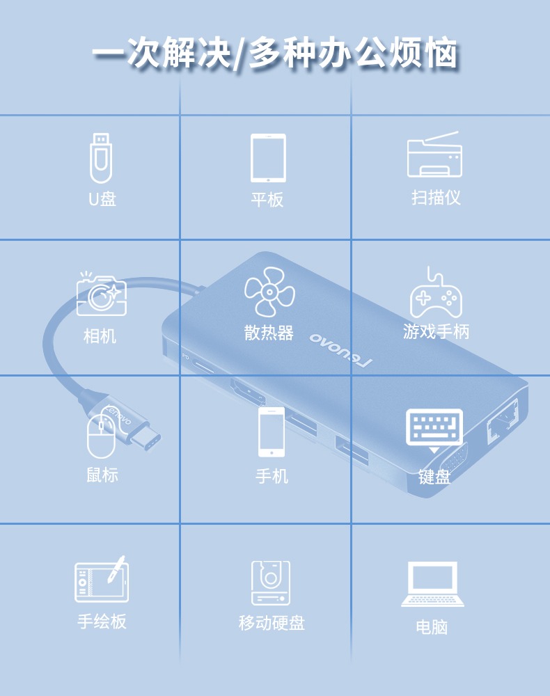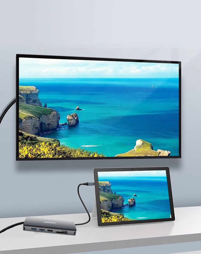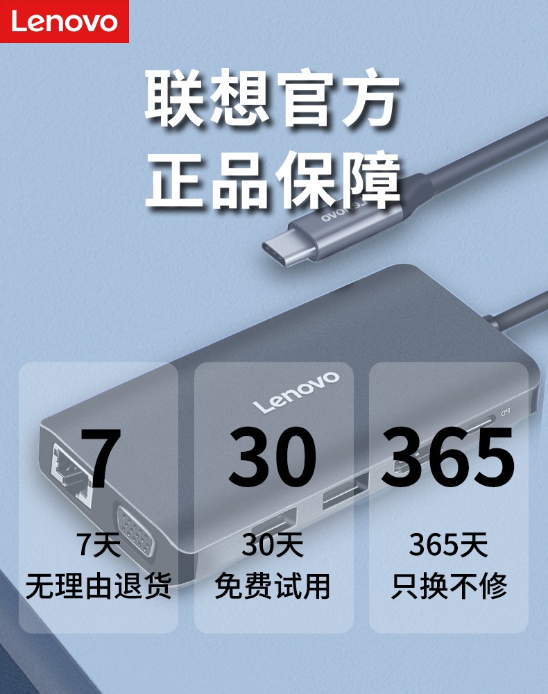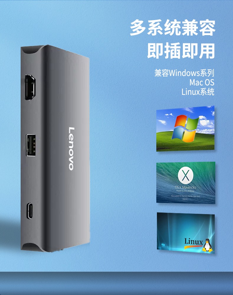 联想USB3.0扩展器集分线器转换接头typec转高清HDMI高速VGA笔记本台式电脑外接线拓展坞HUB多功能延长一拖四