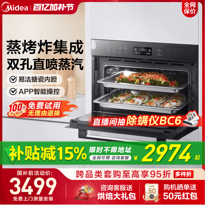 政府补贴美的5055嵌入式蒸烤一体机蒸烤箱家用大容量智能电蒸箱