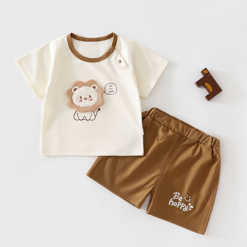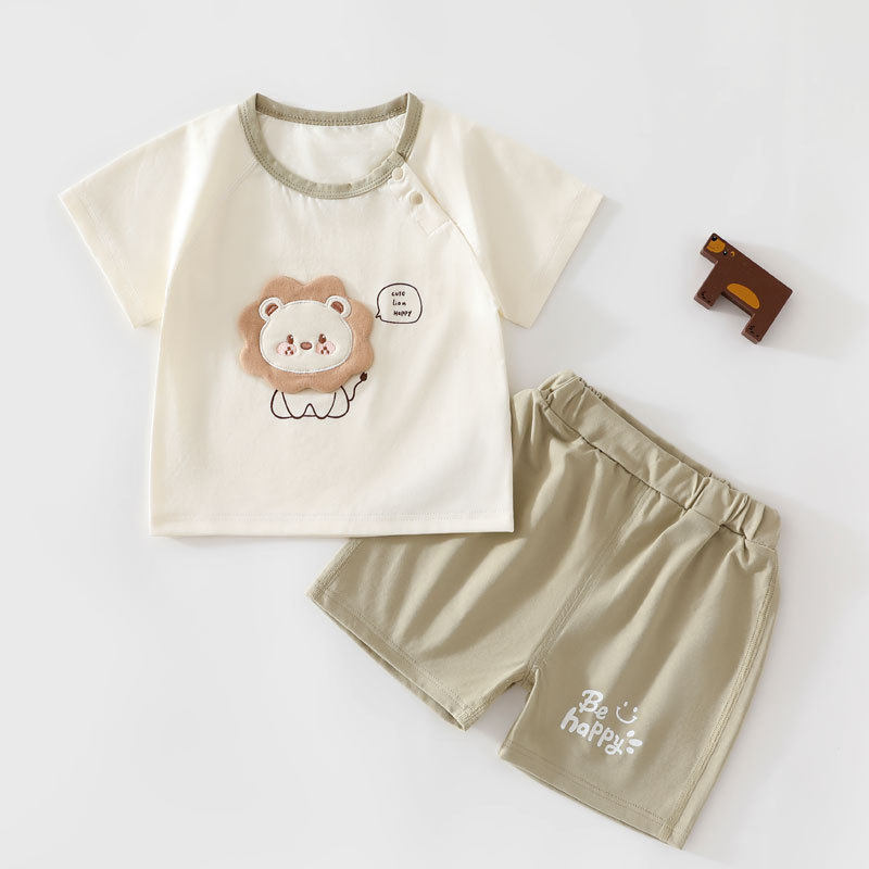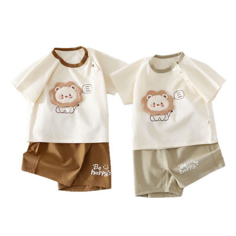 品牌撤柜折扣亲子夏季婴儿短袖短裤套装卡通宝宝休闲套头运动装